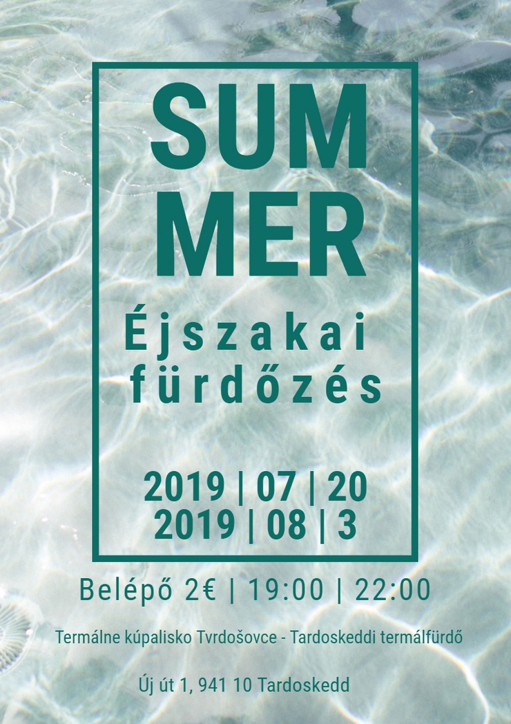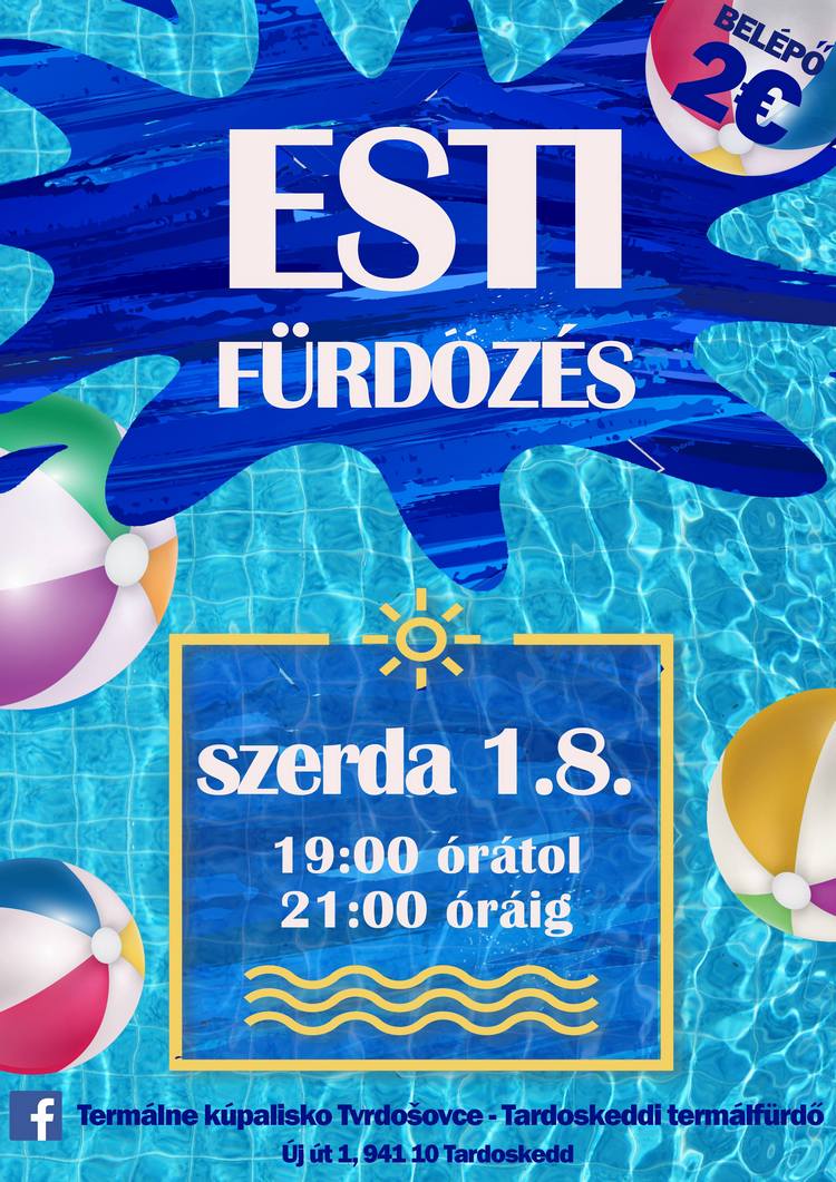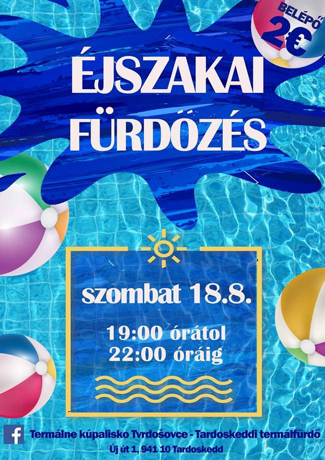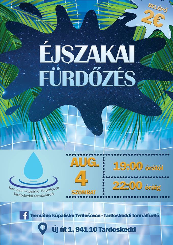 Tardoskeddi Termálfürdő éjszakai fürdőzésre hív minden érdeklődőt, melyre szombaton augusztus 8-án, 19.00 -22.00 óra közt kerül sor. A belépődíj: 2 €.