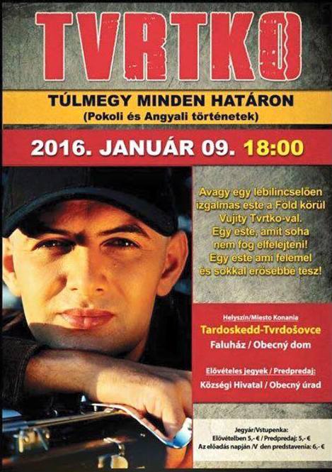 értesítjük Önöket, hogy a nagy érdeklődésre való tekintettel 2016. január 9-én, szombaton Vujity Tvrtko két előadást tart községünkben.