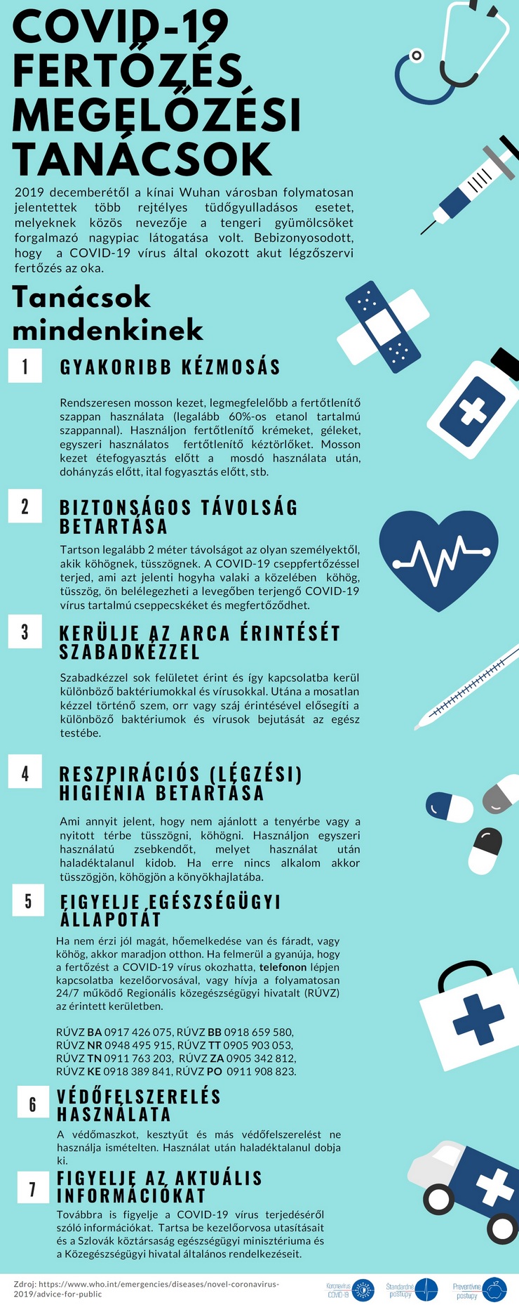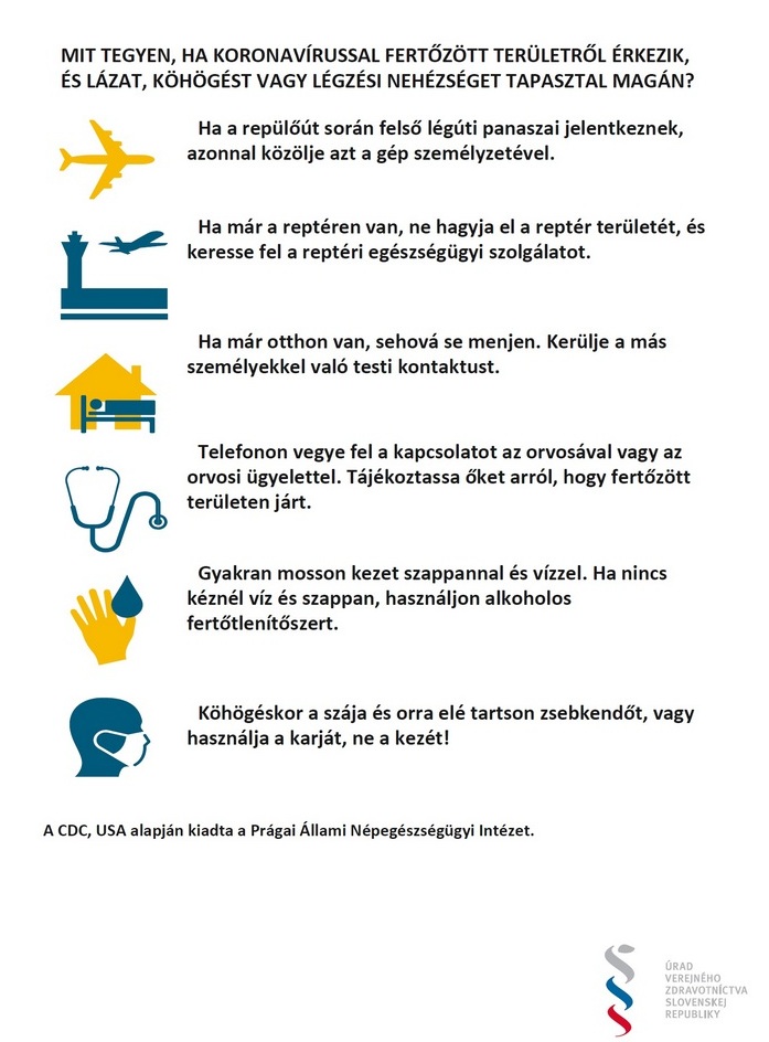 A közegészség védelmére kihirdetett rendkívüli állapotra való tekintettel, melynek célja a COVID-19 koronavírus okozta megbetegedés megelőzése a Szlovák Köztársaság területén, kérjük Önöket, hogy tartsák be az ajánlott óvintézkedéseket, melyeknek célja a vírus terjedésének megfékezése és a súlyos tünetek megelőzése.